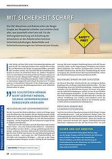 The CNC machines and robot cells of the Berger Group grind and sharpen (almost) everything that needs to be permanently sharp. Solenoid interlocks, control panels and safety controllers from Schmersal are used for position monitoring and interlocking of the safety doors on the robot cells.