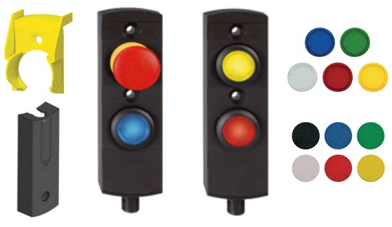 Uuteen ohjauspainekekoteloon voidaan asentaa kaksi ohjauspainiketta, joita voivat olla hätäseispainike, valopainike, painike tai merkkivalo. Liityntä koteloon tapahtuu nopeasti ja virheettömästi 8-pinnisen M12-liittimen avulla.